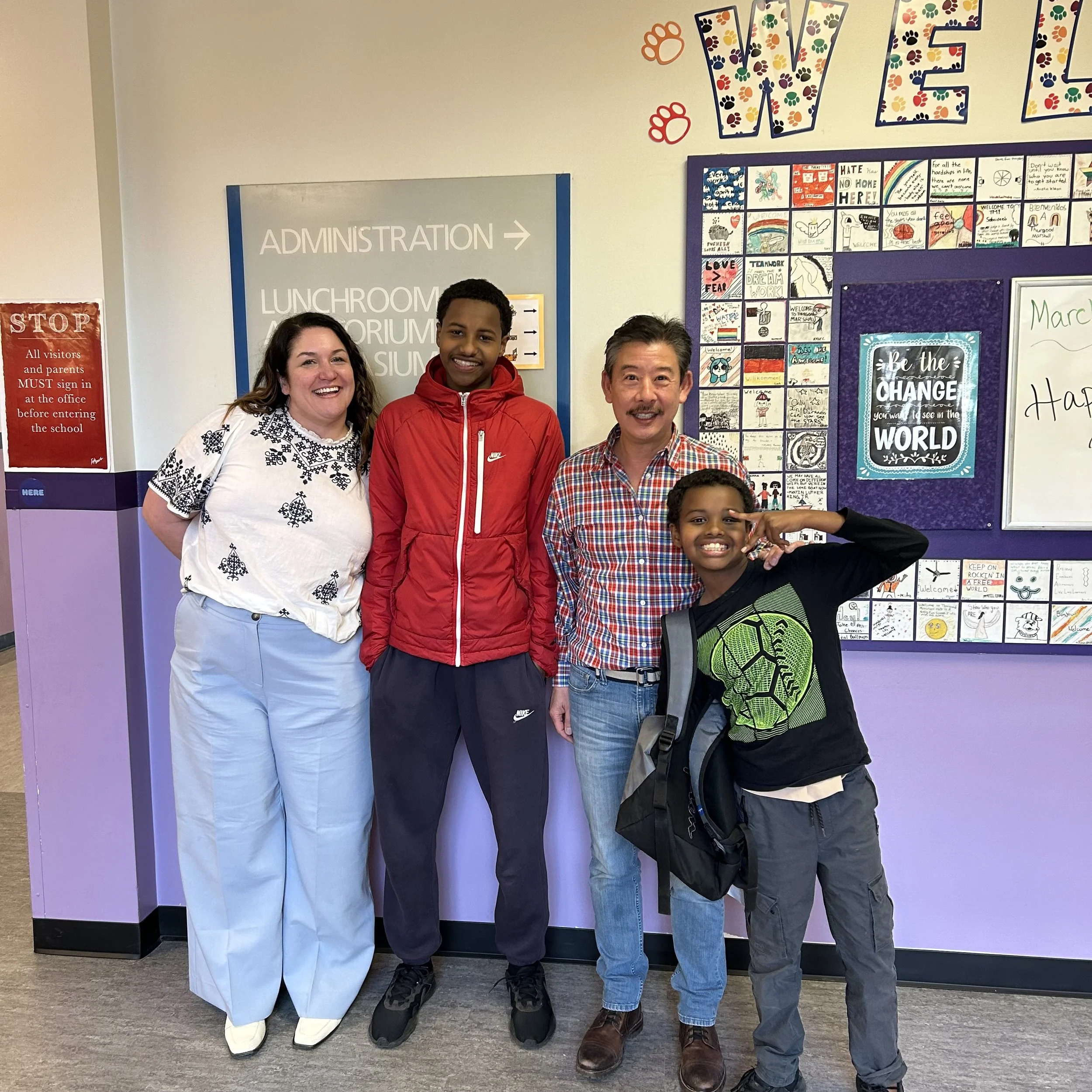 (L to R, Sam Egelhoff, an Invest in Youth partner teacher; a former student of mine; me; and the former student’s little brother who is now an Invest in Youth student)